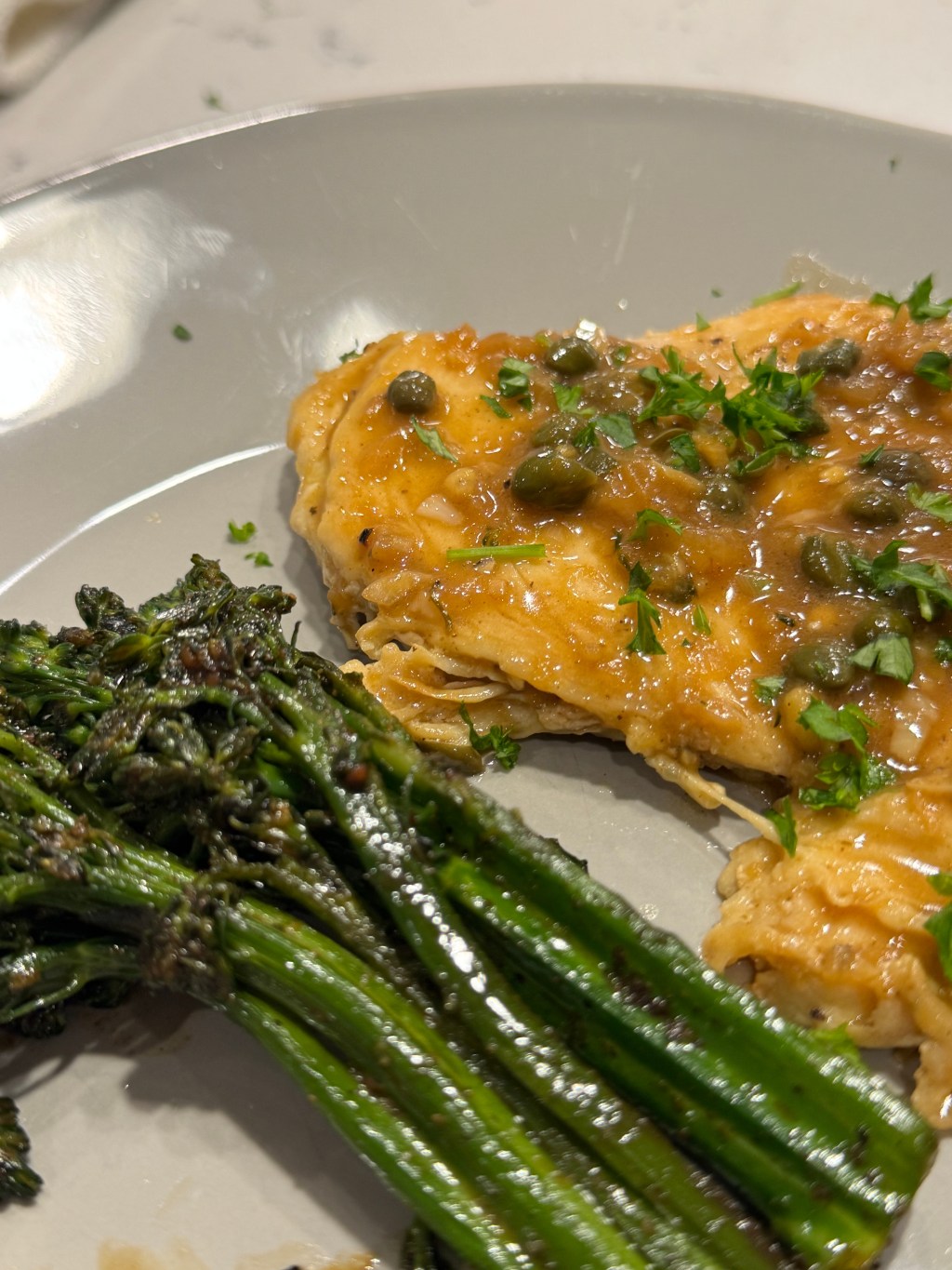 If you love bright, silky pan sauces and quick, restaurant-style dinners, this Chicken with Lemon Caper Pan Sauce is a guaranteed favorite. Thin-sliced chicken breasts get a golden sear, then simmer in a buttery, tangy sauce infused with garlic, shallot, lemon, and briny capers. Paired with simply steamed broccolini, it’s a light, fresh meal that still feels indulgent.