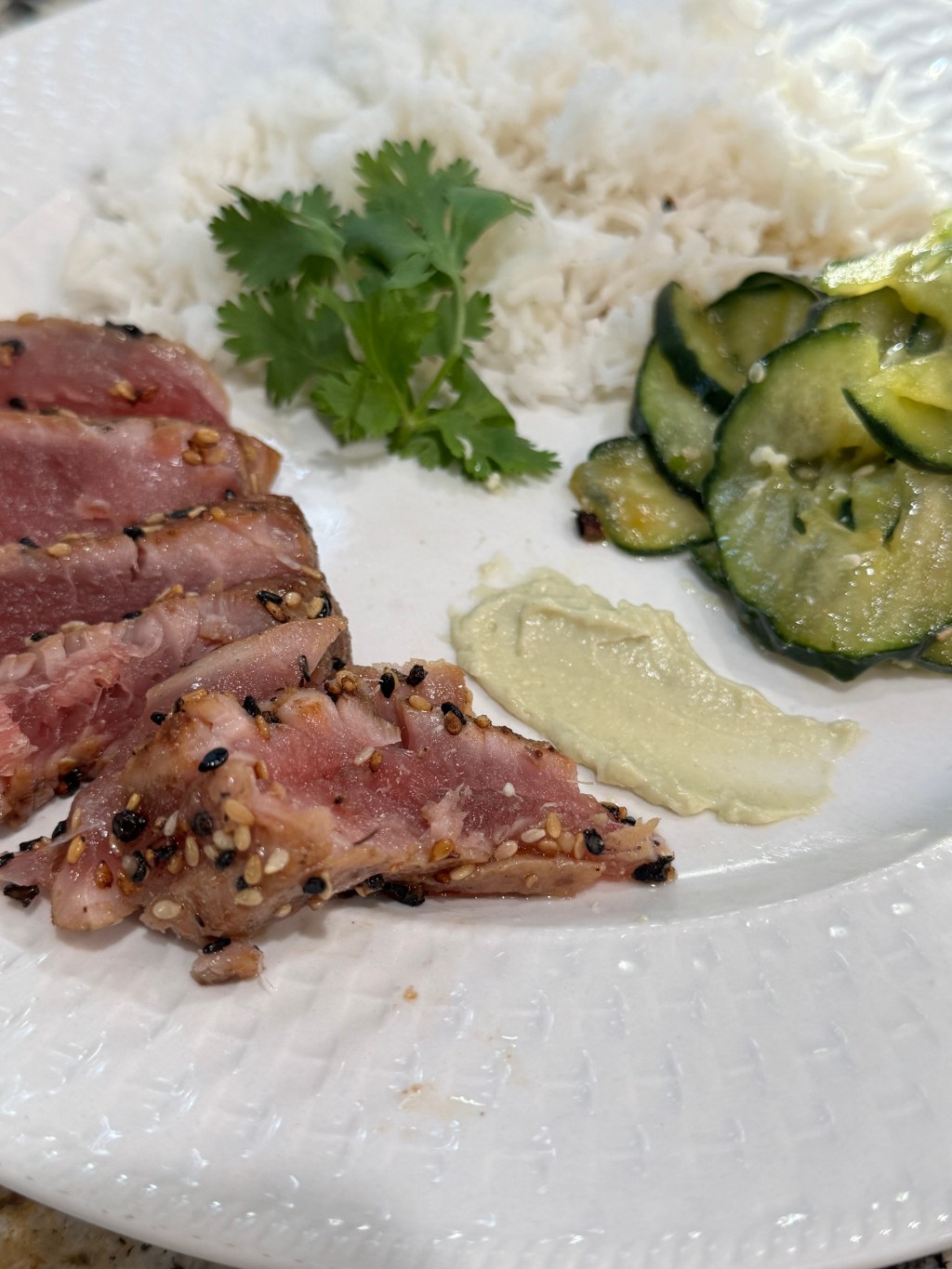 Seared Ahi Tuna with Basmati Rice & Cucumber Salad